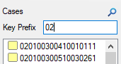 To view a subset of the cases in the data file, you can enter a search query to filter the cases shown. The query will only filter by case IDs, not case labels. Click on the magnification glass icon, enter the key prefix, and press Enter. For example, this query only shows cases whose ID begins with "02":