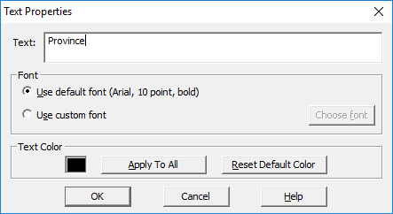 The button shows the color of the selected text. To change the text color, click on this button, select a new color and click OK. You can change the text color back to what it was originally (usually black) by clicking on the Reset Default Color button. You can make all text on all forms the same color by clicking on the Apply to All button.