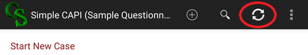 On mobile devices, the synchronization may be launched from the case listing view by choosing Synchronize from the menu or tapping the following icon: