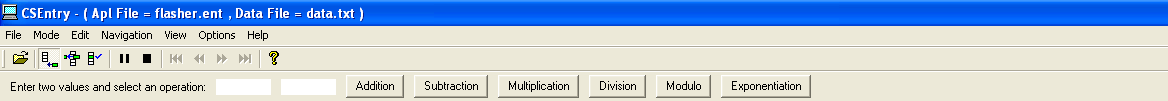 The button text comes from the alpha-expression. An optional argument specifies a function that is to be called when the button is pressed. If the function has parameters, it is necessary to specify the values of the arguments. The values of these arguments are evaluated when the button is activated by a user, not at the point that the button is added to the userbar. Several existing functions (mimicking options available on the CSEntry menu) can be specified using the do command: