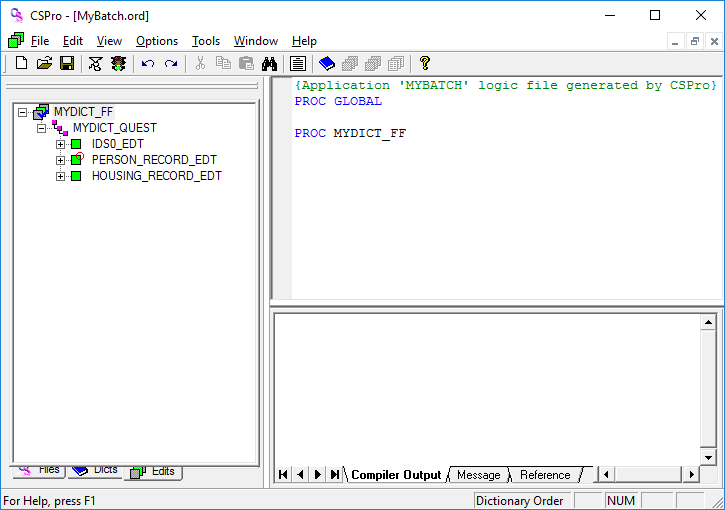 - Change the name to C:\CSProTutorial\MyDict.dcf.