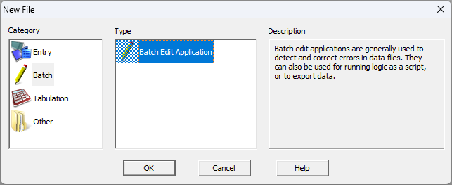on the toolbar. - Select the Batch category and the Batch Edit Application type and press OK.